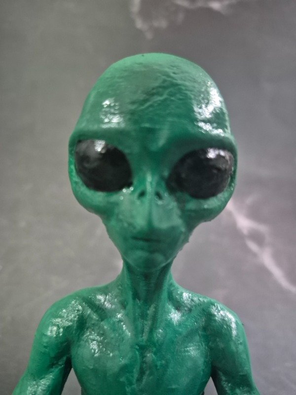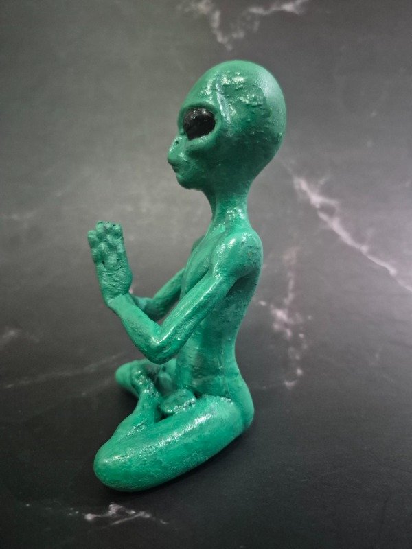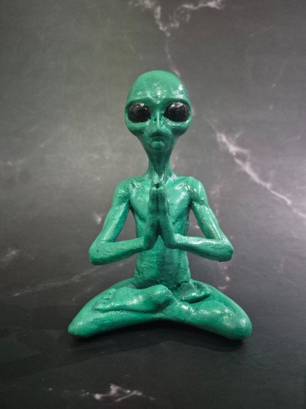 Figura artesanal única que fusiona lo místico con lo extraterrestre.